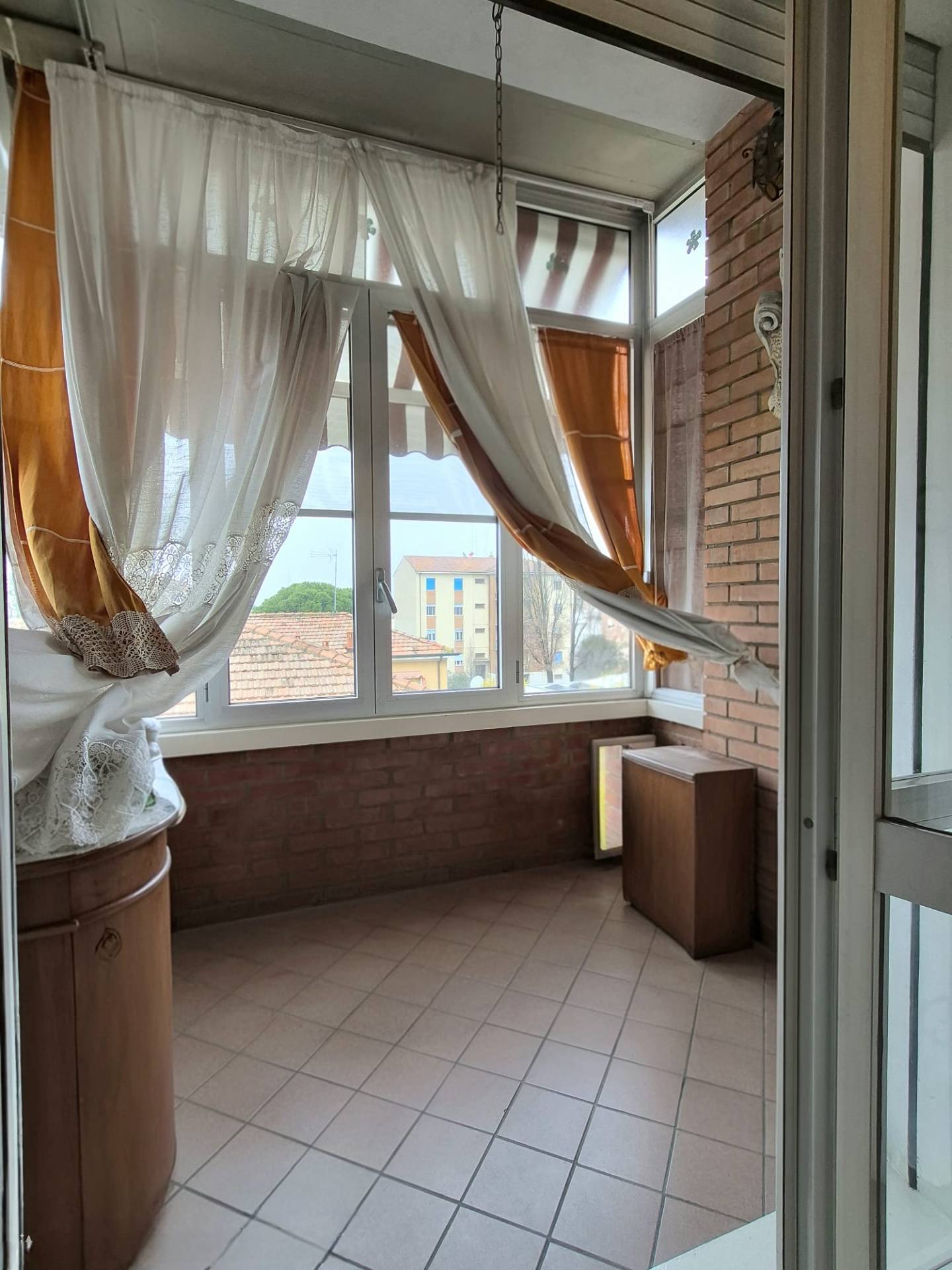 Via Brondi, tranquilla laterale della Via Bologna, comoda al C.C. Il Castello e ben collegata da ciclabili ed autobus al centro cittadino, proponiamo in vendita interessate appartamento sito all'ultimo piano di piccolo condominio faccia vista.