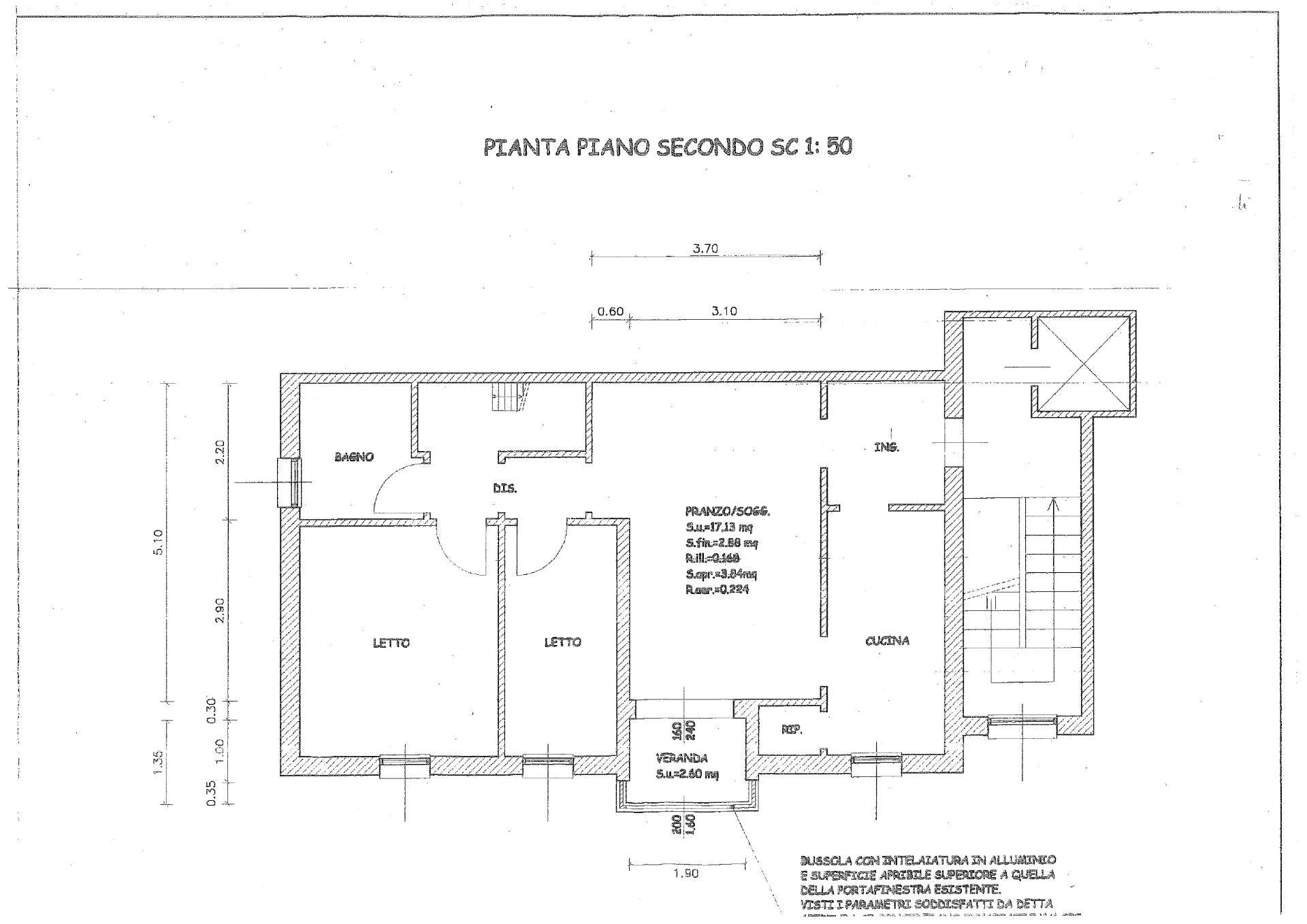 Caratterizzato da spazi comodi e ben sfruttabili si compone di zona ingresso arredabile; cucina separata dal spazioso soggiorno con balconcino verandato; disimpegno notte che collega due camere da letto (M+S) ed il primo bagno.