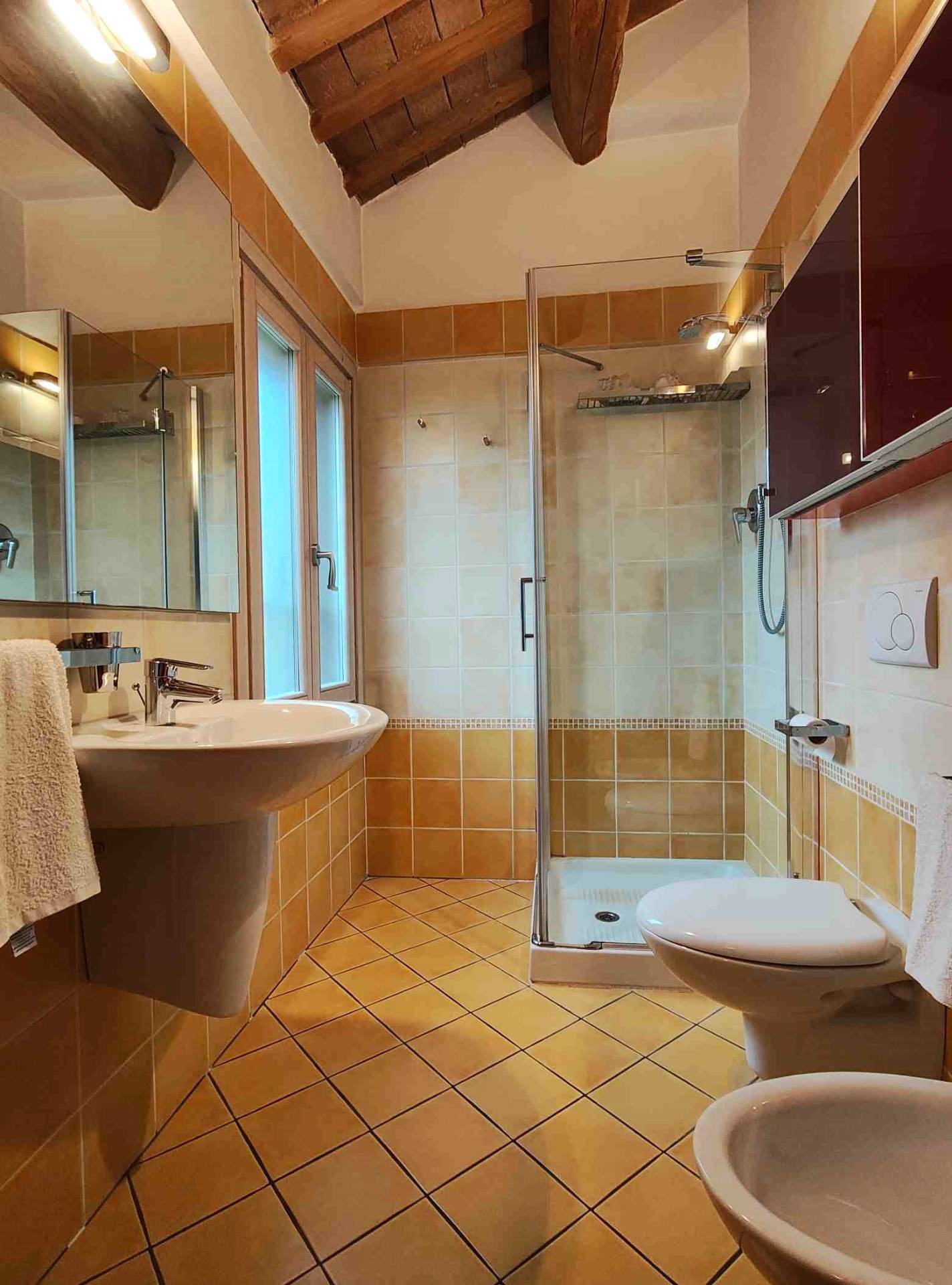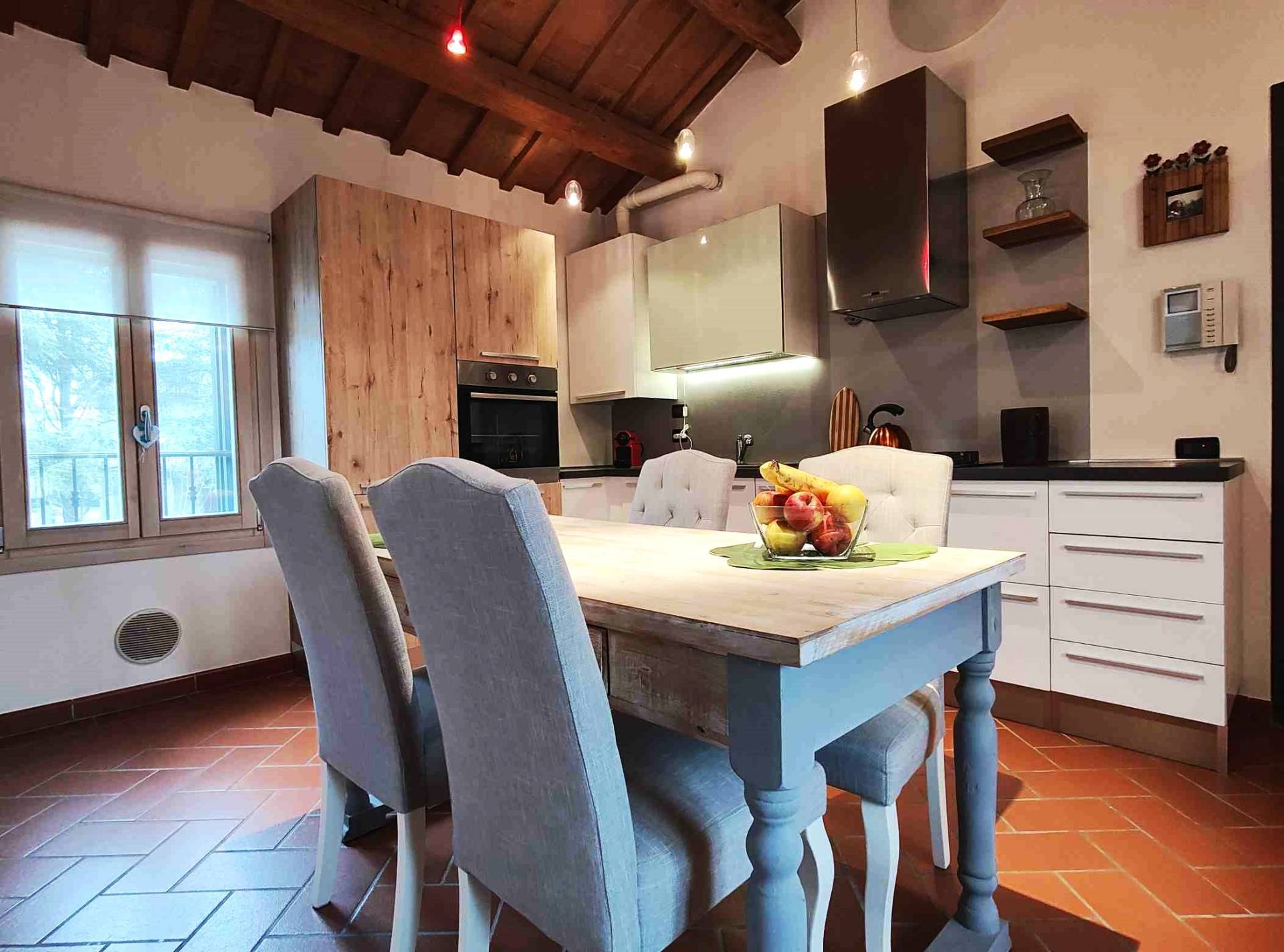 Gli spazi sono estremamente curati in ogni particolare; il soffitto travi in legno a doppia falda dona molto calore e rende l'abitazione molto accogliente.