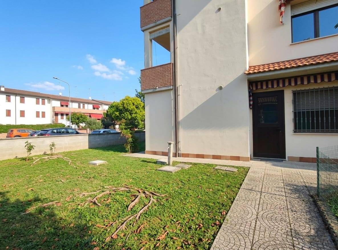 Interamente disposto al piano terra, quindi adatto anche a persone con mobilità ridotta, l'alloggio è pronto per essere abitato e dispone di ampio giardino privato molto fruibile di circa 140 mt., che corre sui due lati dell'abitazione.
