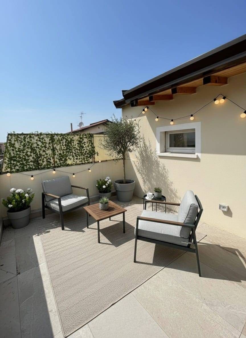 Possibilità di realizzare una tettoia bioclimatica sulla terrazza o chiudere con veranda per creare uno spazio vivibile in tutte le stagioni.