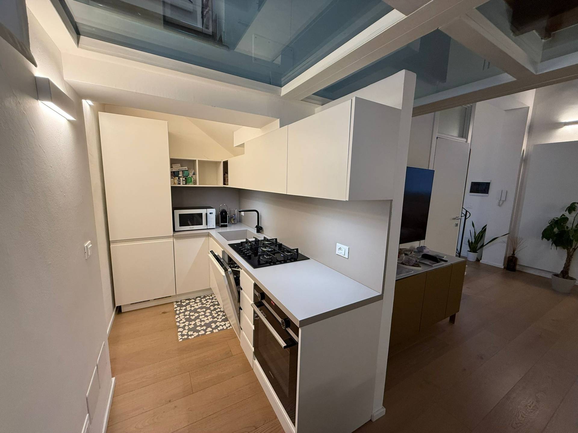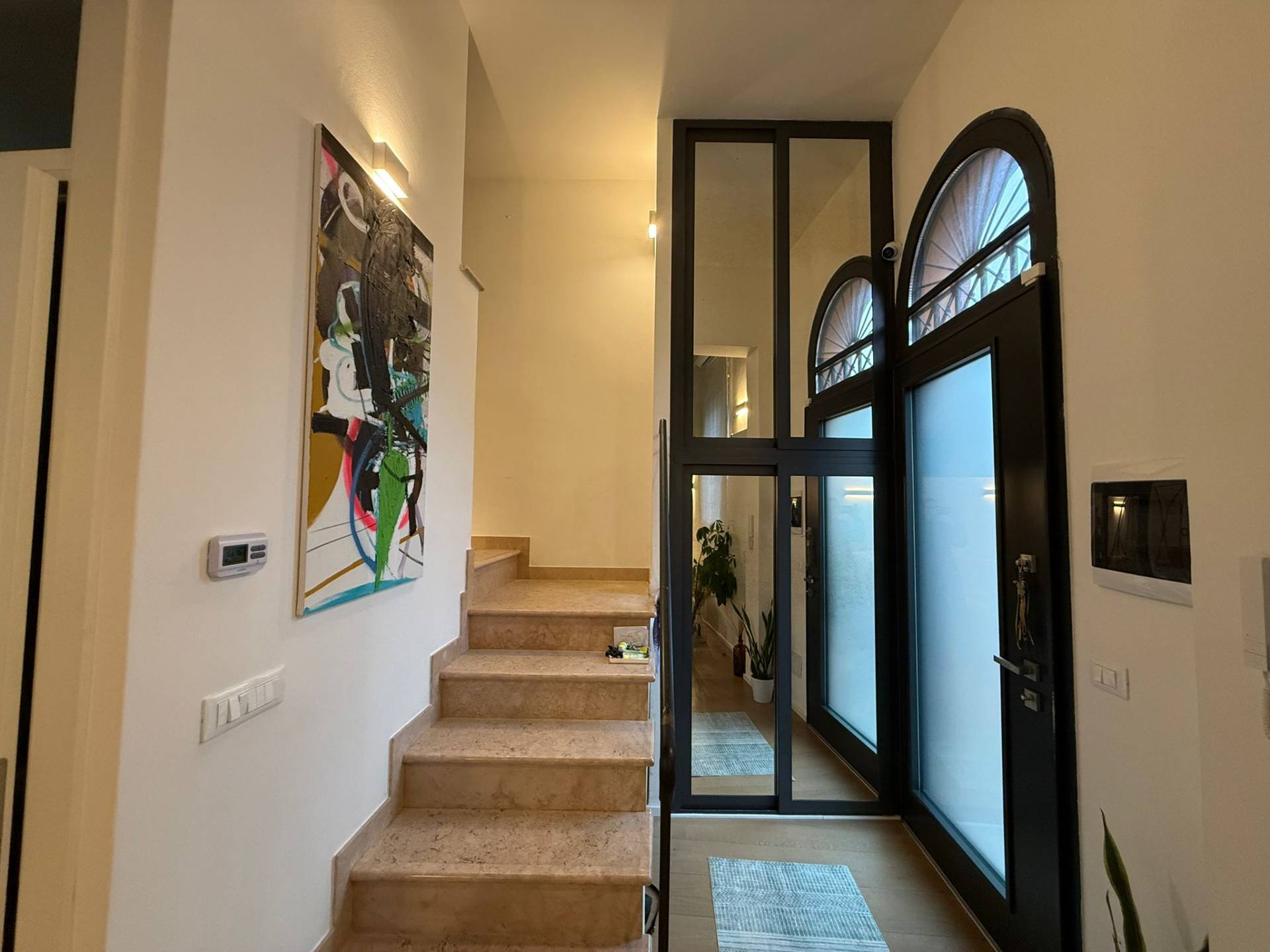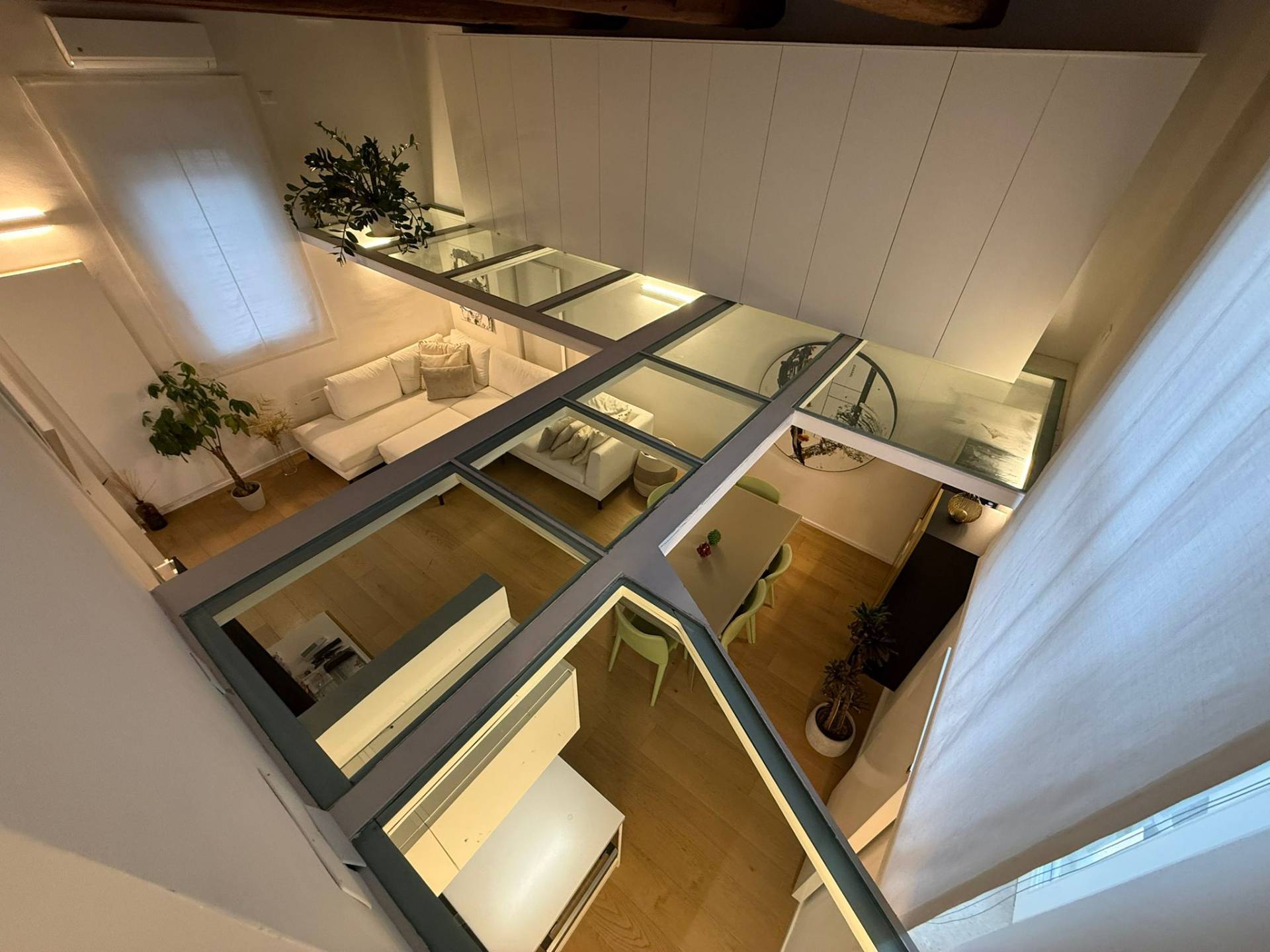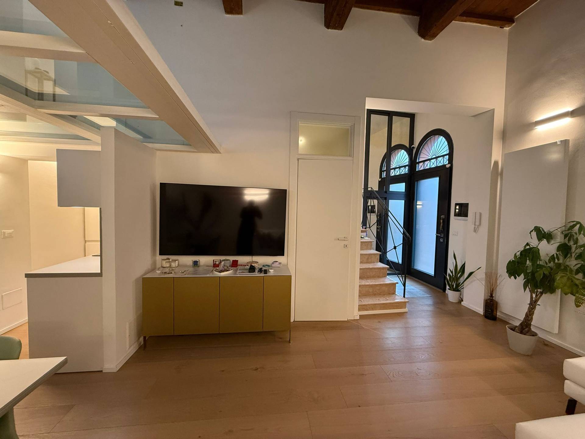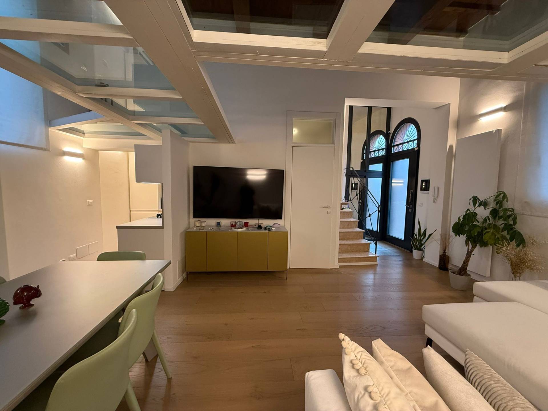 Immobile ristrutturato a nuovo. Ingresso su luminosa zona living open space, angolo pranzo, cucina a vista, bagno con box doccia rivestito completamente in resina, soppalco in vetro ideale come zona armadiatura o studio, soffitti a cassettoni di 5 mq. di altezza. Al livello ammezzato si accede a soppalco abitabile. Piano superiore con camera da letto matrimoniale, camera da letto doppia, ripostiglio con lavatrice e asciugatrice, secondo ampio bagno finestrato totalmente rivestito in resina con box doccia. Travi a vista, velux elettrico. Infissi in legno con gas coibentanti. Cappotto interno con nanotecnologia. Scarpiera a scomparsa. Ripostiglio in sottoscala. Radiatori a piastra piatta. Aria condizionata/pompa di calore. Utenze centralizzate con contacalorie. Giardino esclusivo e posto auto coperto da tettoia. Garage doppio (parcheggiabili due macchine). Si vende parzialmente arredato. Posto bici. Finiture di pregio. Libero. Info presso i ns. uffici.