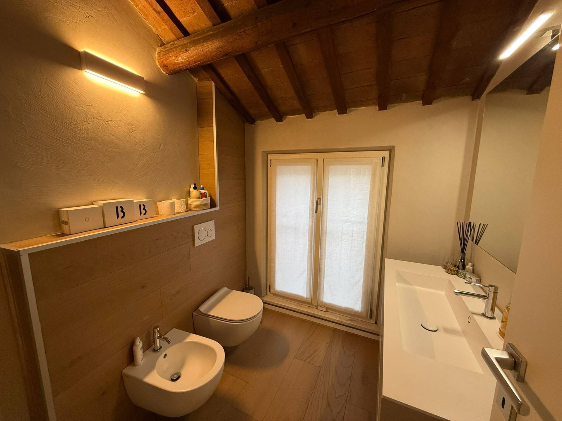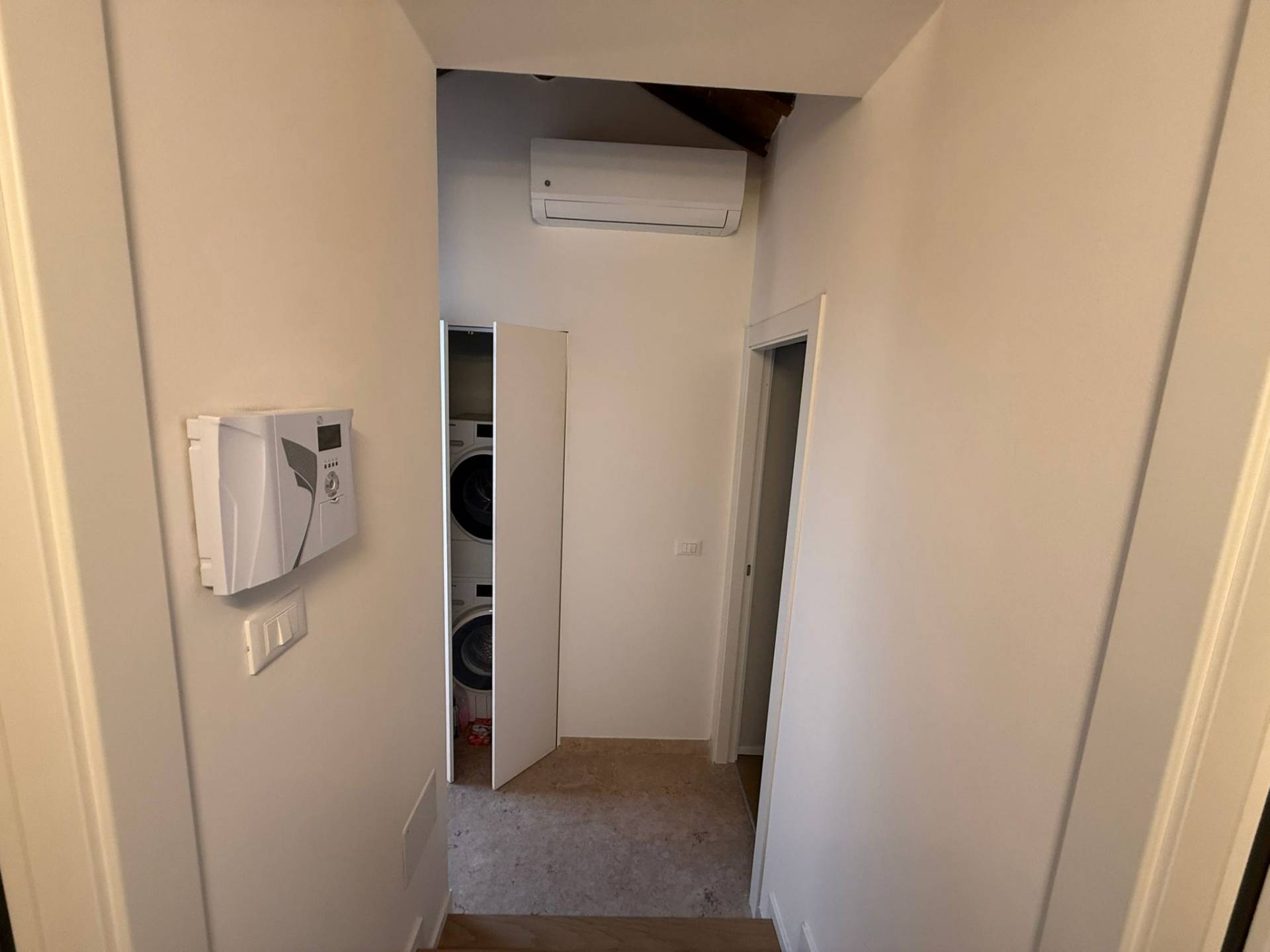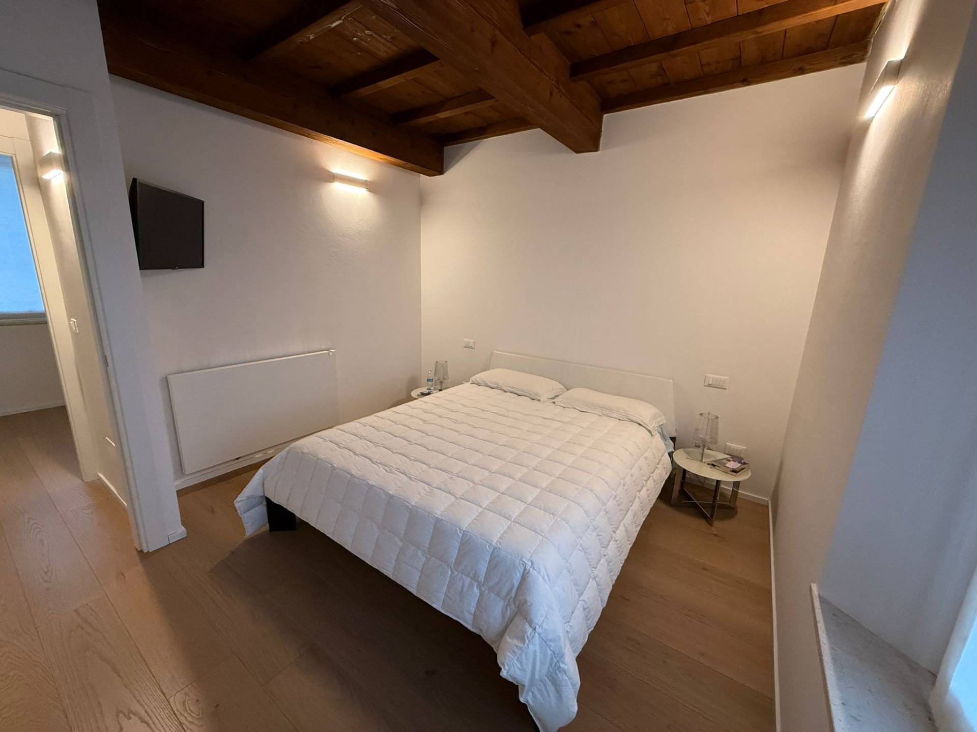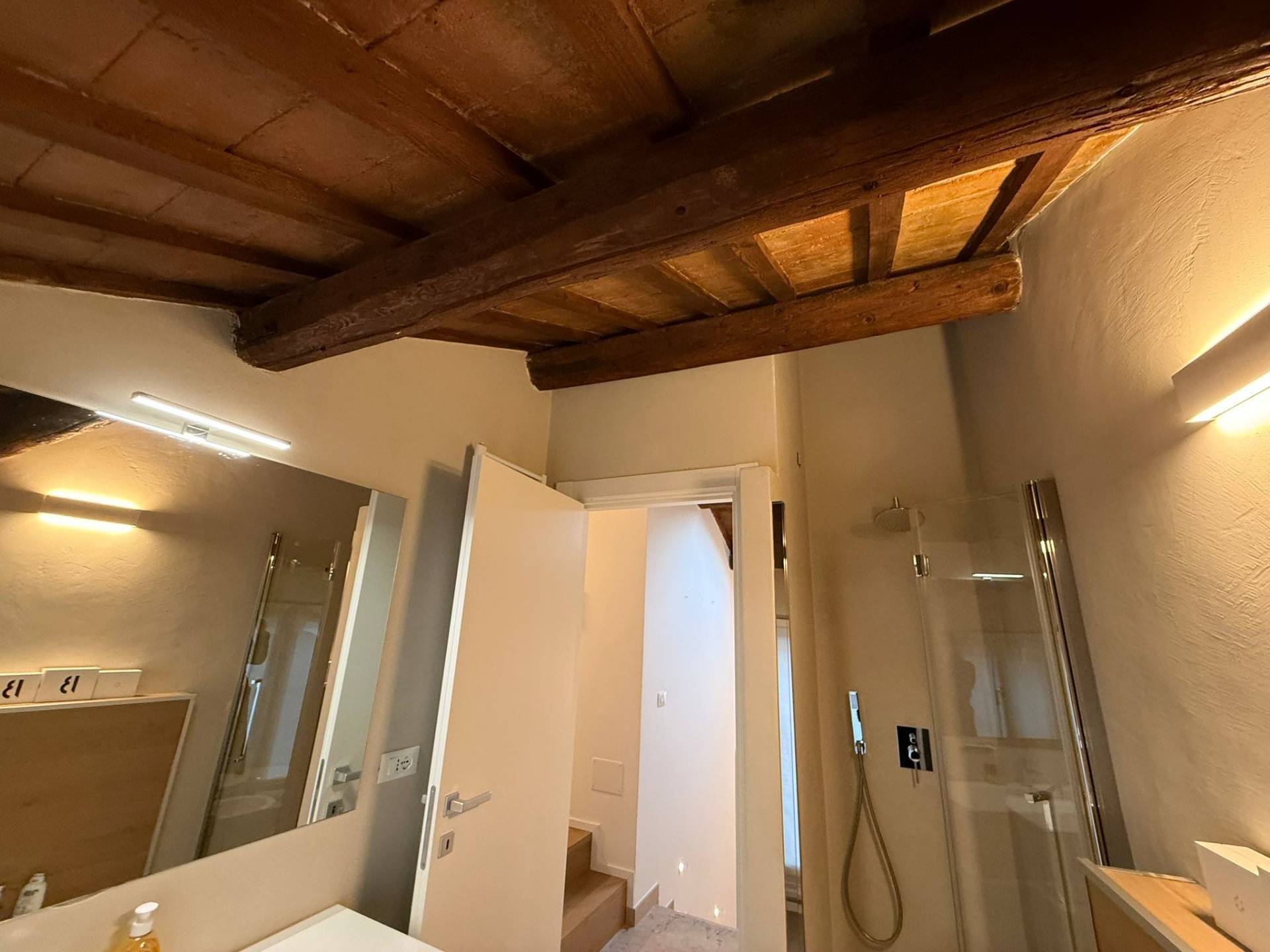 Immobile ristrutturato a nuovo. Ingresso su luminosa zona living open space, angolo pranzo, cucina a vista, bagno con box doccia rivestito completamente in resina, soppalco in vetro ideale come zona armadiatura o studio, soffitti a cassettoni di 5 mq. di altezza. Al livello ammezzato si accede a soppalco abitabile. Piano superiore con camera da letto matrimoniale, camera da letto doppia, ripostiglio con lavatrice e asciugatrice, secondo ampio bagno finestrato totalmente rivestito in resina con box doccia. Travi a vista, velux elettrico. Infissi in legno con gas coibentanti. Cappotto interno con nanotecnologia. Scarpiera a scomparsa. Ripostiglio in sottoscala. Radiatori a piastra piatta. Aria condizionata/pompa di calore. Utenze centralizzate con contacalorie. Giardino esclusivo e posto auto coperto da tettoia. Garage doppio (parcheggiabili due macchine). Si vende parzialmente arredato. Posto bici. Finiture di pregio. Libero. Info presso i ns. uffici.