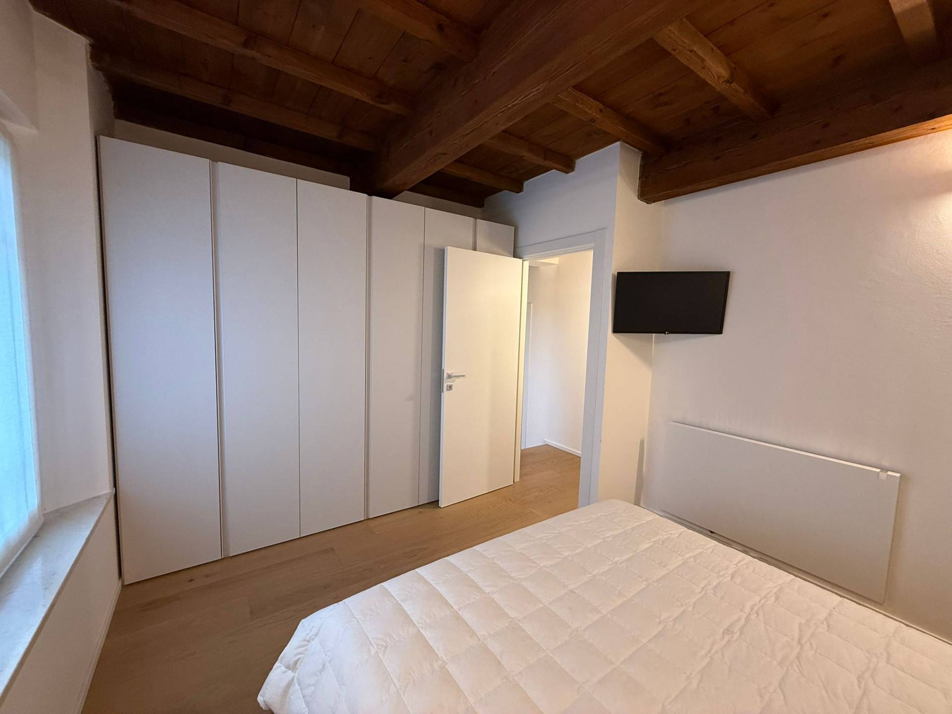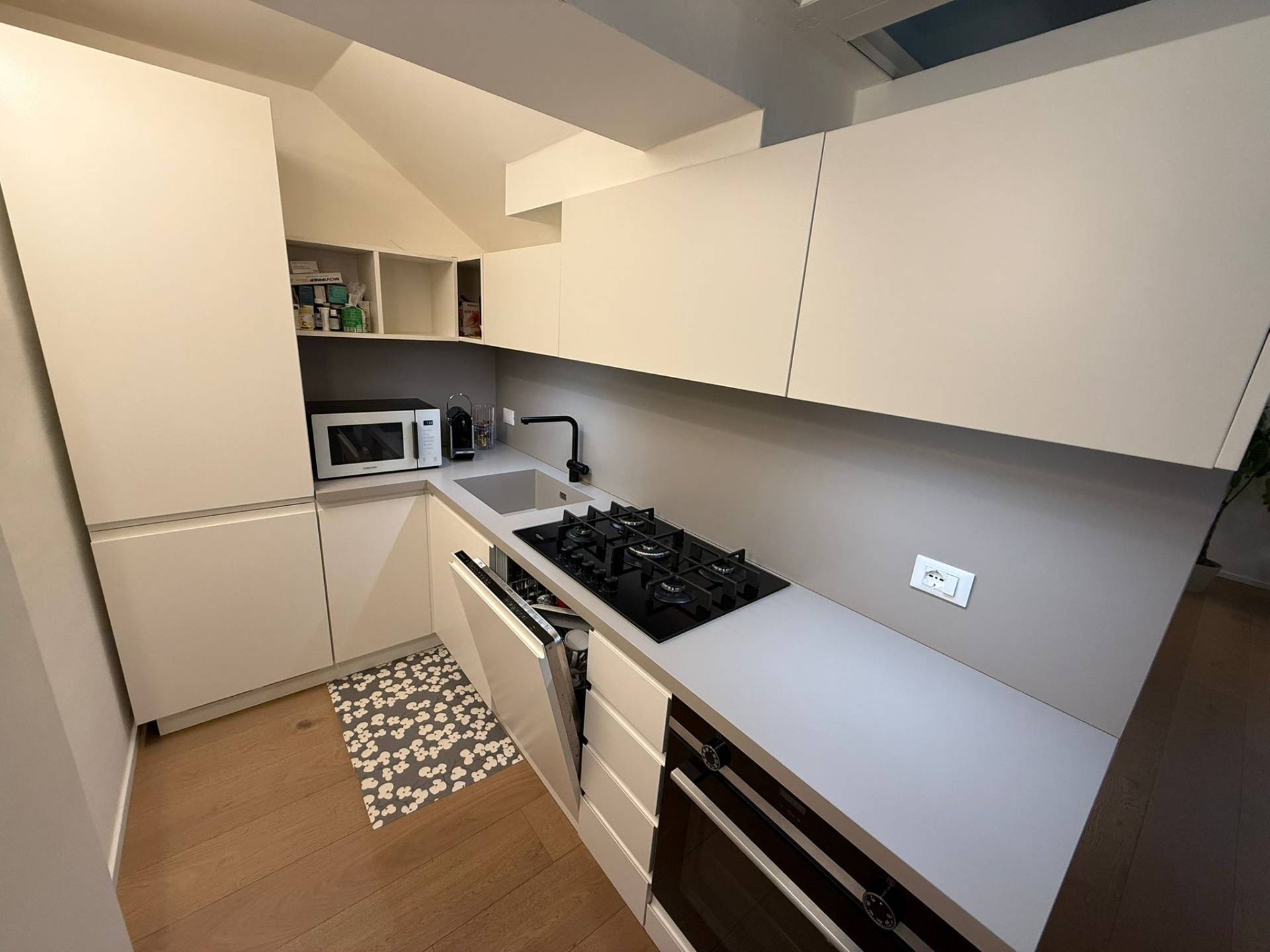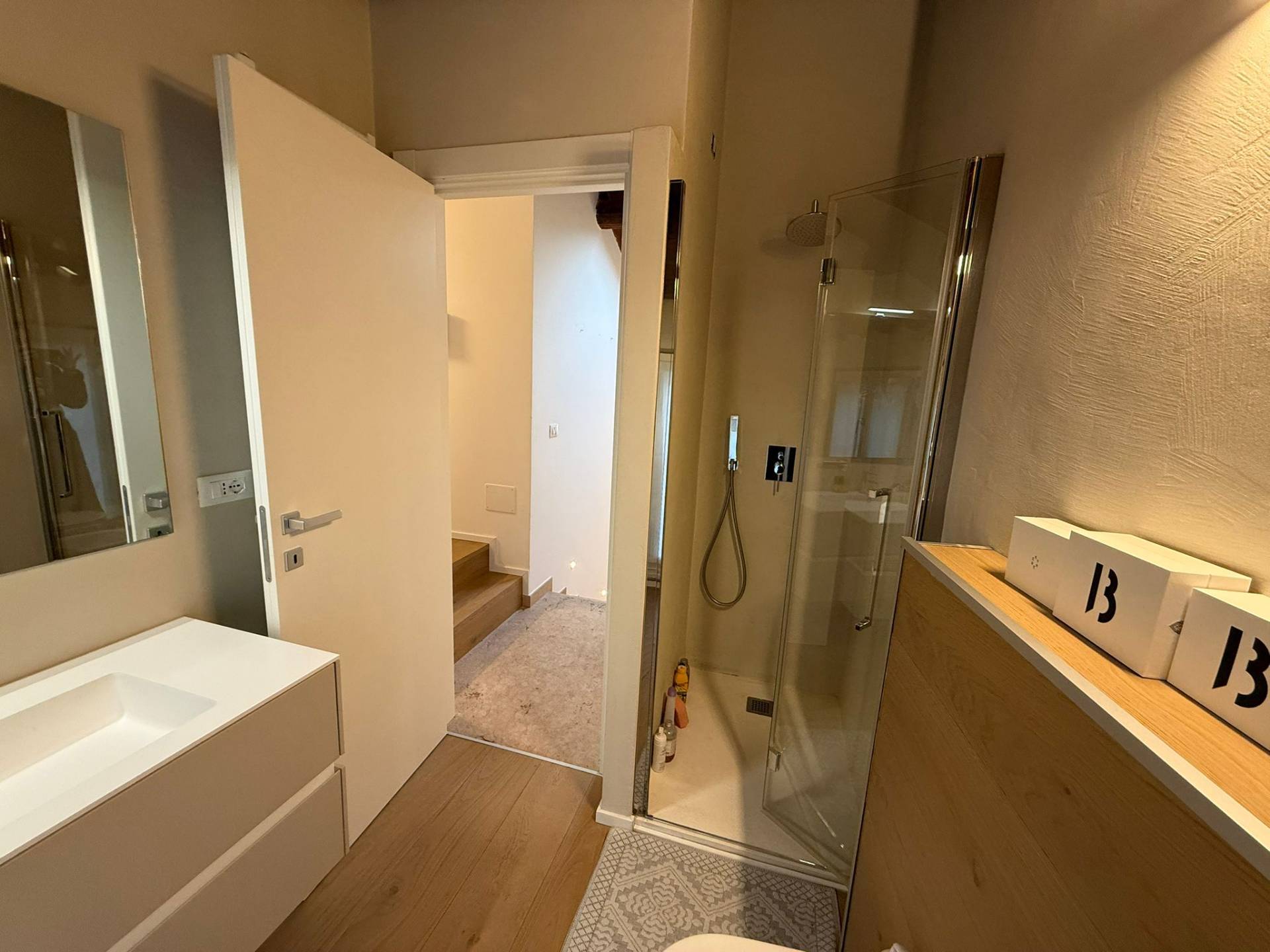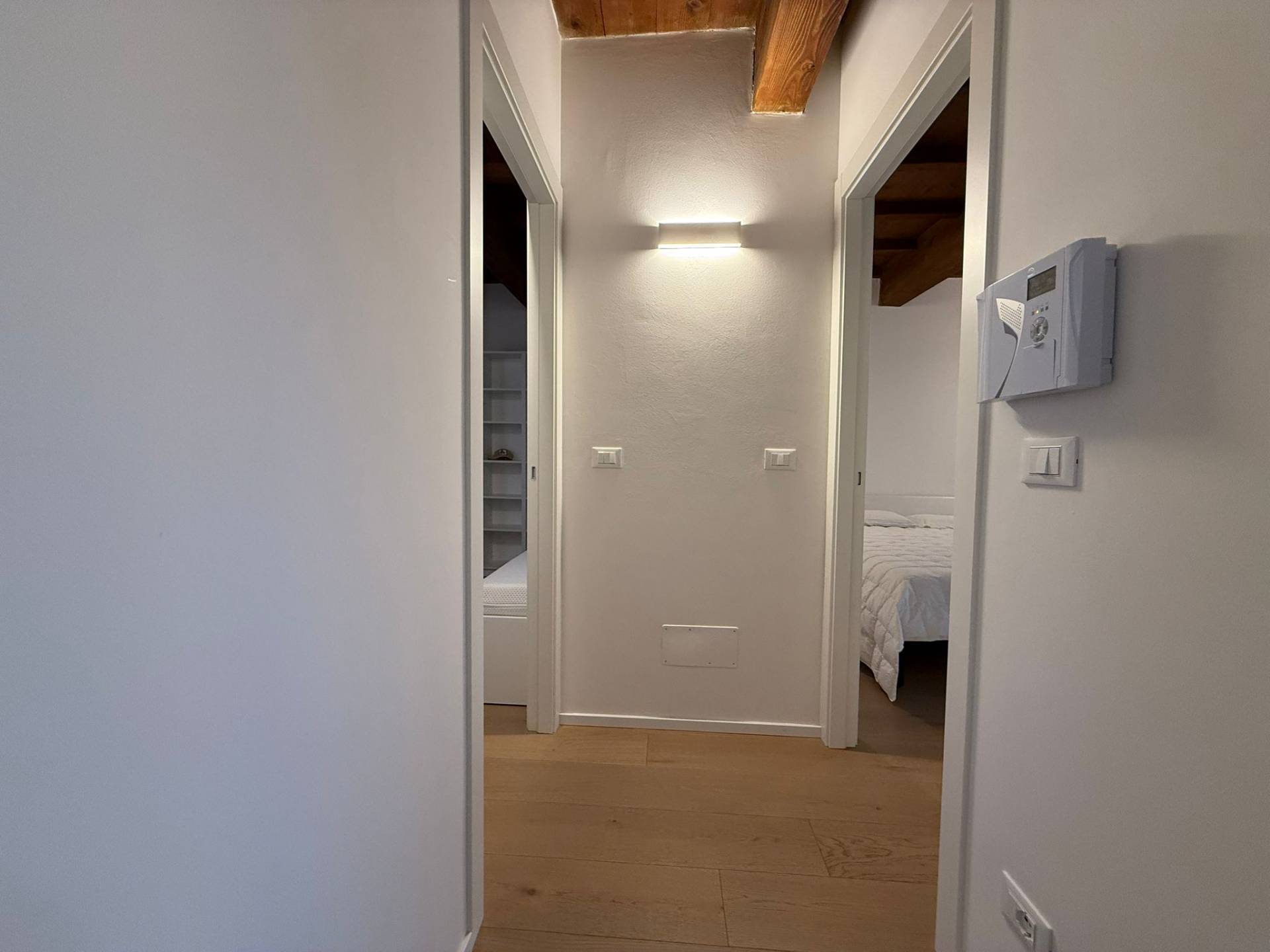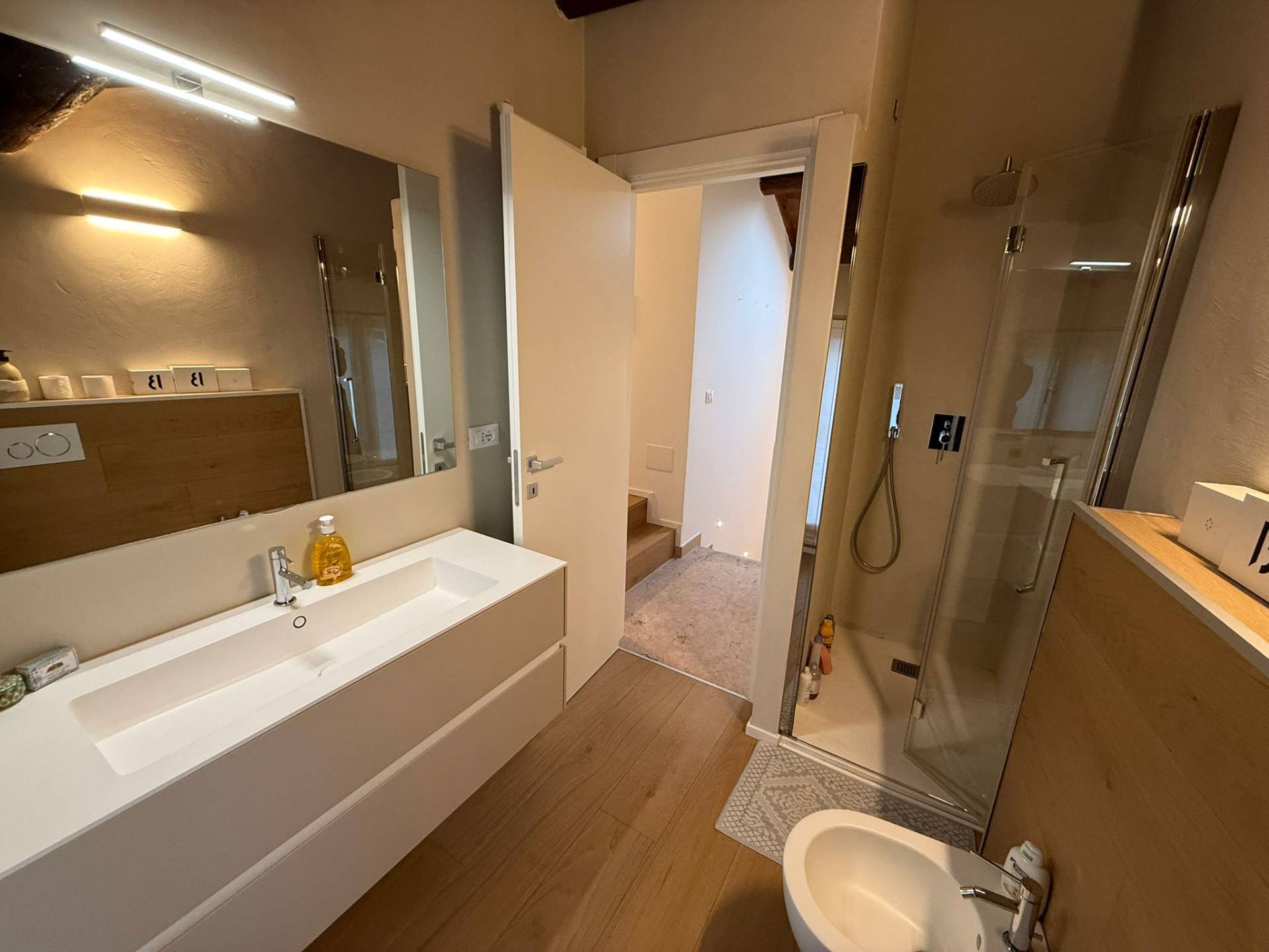 Immobile ristrutturato a nuovo. Ingresso su luminosa zona living open space, angolo pranzo, cucina a vista, bagno con box doccia rivestito completamente in resina, soppalco in vetro ideale come zona armadiatura o studio, soffitti a cassettoni di 5 mq. di altezza. Al livello ammezzato si accede a soppalco abitabile. Piano superiore con camera da letto matrimoniale, camera da letto doppia, ripostiglio con lavatrice e asciugatrice, secondo ampio bagno finestrato totalmente rivestito in resina con box doccia. Travi a vista, velux elettrico. Infissi in legno con gas coibentanti. Cappotto interno con nanotecnologia. Scarpiera a scomparsa. Ripostiglio in sottoscala. Radiatori a piastra piatta. Aria condizionata/pompa di calore. Utenze centralizzate con contacalorie. Giardino esclusivo e posto auto coperto da tettoia. Garage doppio (parcheggiabili due macchine). Si vende parzialmente arredato. Posto bici. Finiture di pregio. Libero. Info presso i ns. uffici.