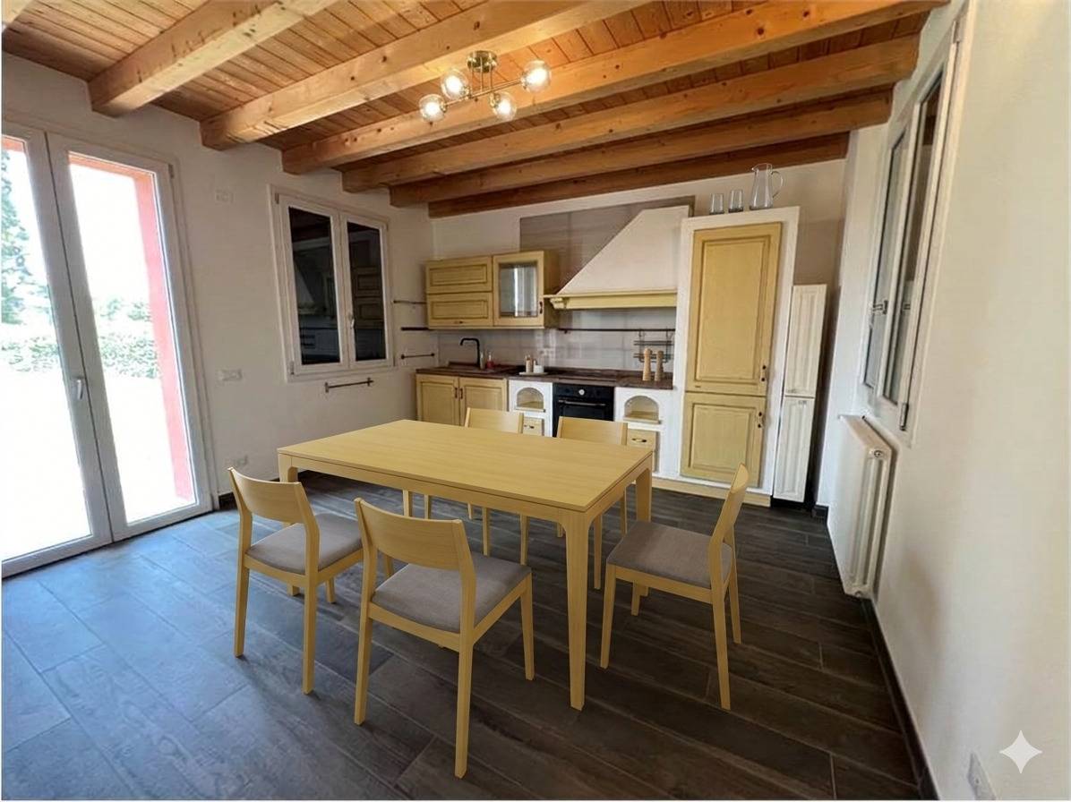 Si vende parzialmente arredato. Di pertinenza, oltre alla corte, una garage doppio di circa 30 mq. con pannelli solari.